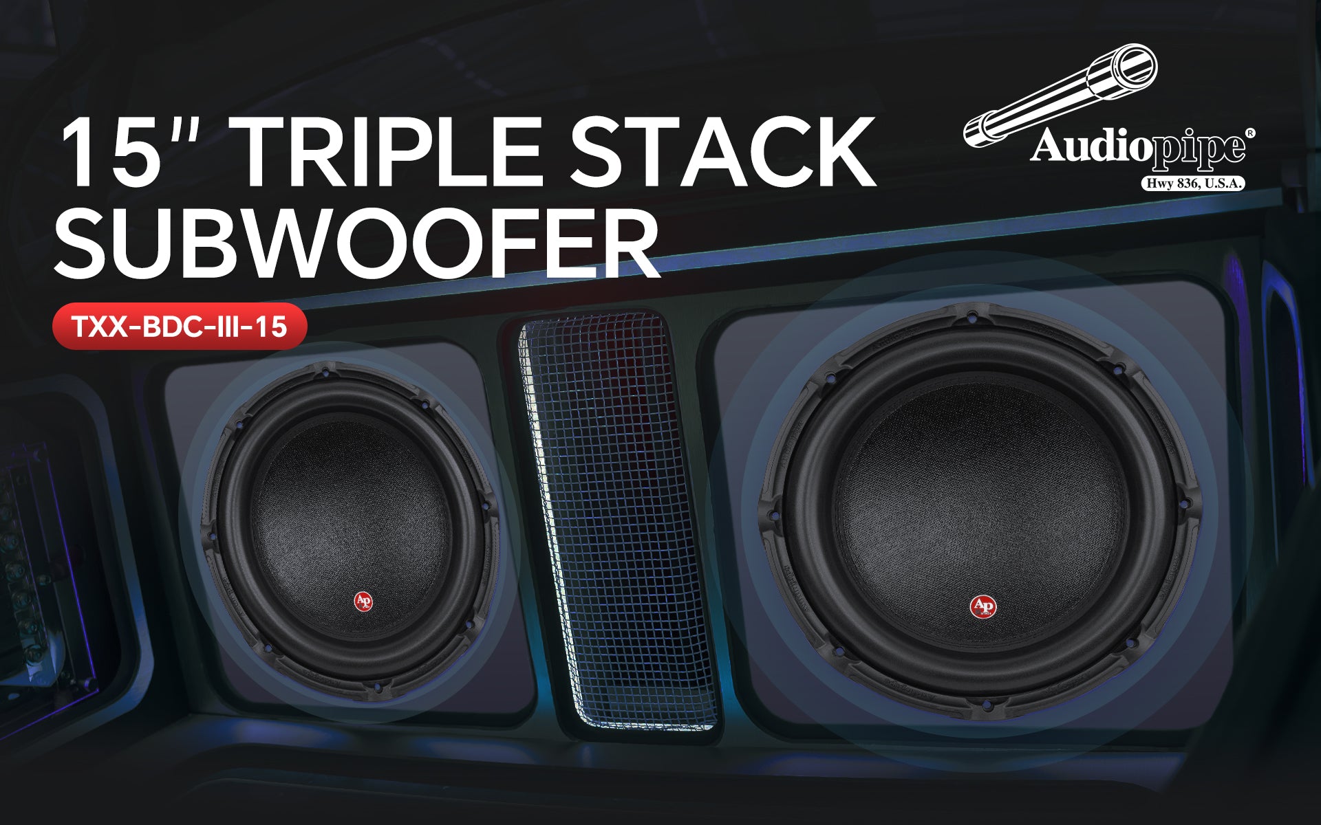 Audiopipe's Triple Stack Composite Cone Subwoofer was designed to add BIG power to your car audio system! We listened to our fans, and created this series to feature 2400 watts peak power, increased voice coil ventilation, and a Kevlar Fiber Composite Non-press Paper Cone with Texture finish for improved rigidity and performance. The newly designed powdered black paint aluminum basket with a composite glass fiber dust cap, and a newly refreshed and strongly constructed dust-proof heat sink were engineered to provide optimal sound quality and endurance. Additionally, the TXX-BDC-III-15's carefully designed and tooled reliable and convenient multi-connect terminals allow for maximum connection and reliability. Get ready for #LOUDANDCLEAR sound!