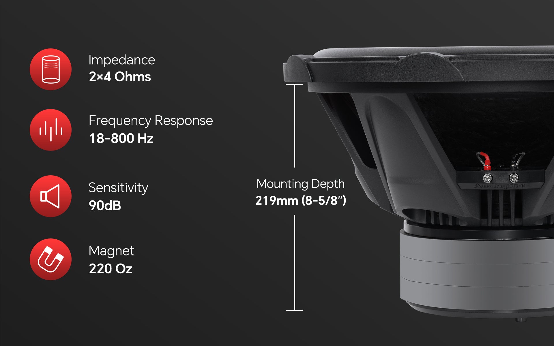 - VOICE COIL: The TXX-BDC-III-15' has a dual 4 ohm 3.3 inch 4-layer high temperature black aluminum (BASV) voice coil, engineered with improved voice coil ventilation for substantial performance and endurance.