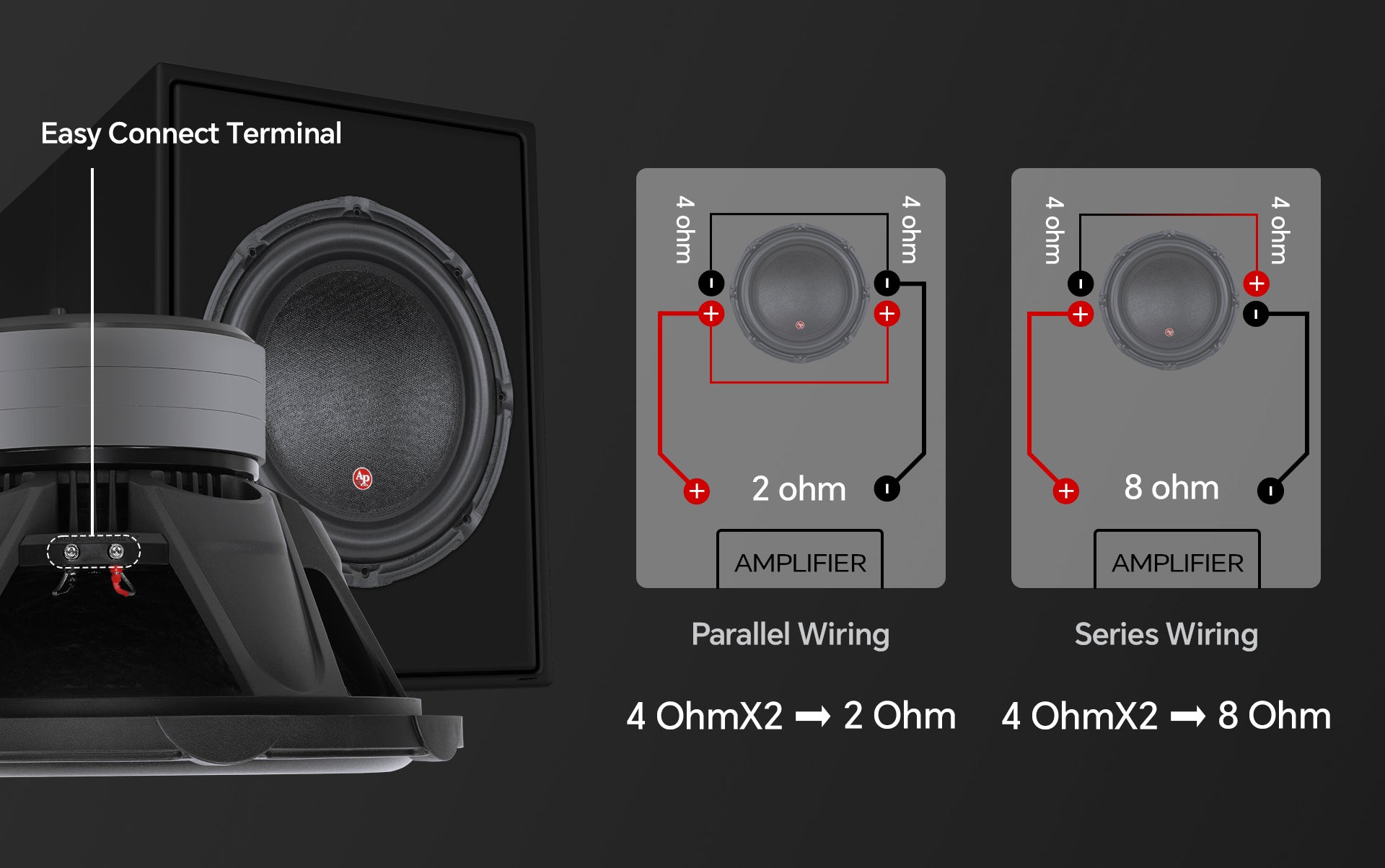 - PATENT PIPE MULTI-CONNECT TERMINALS: The TXX-BDC-III-15's carefully designed and tooled reliable and convenient patent pipe multi-connect terminals allow for easy wiring of your subwoofer in either parallel or series configurations.