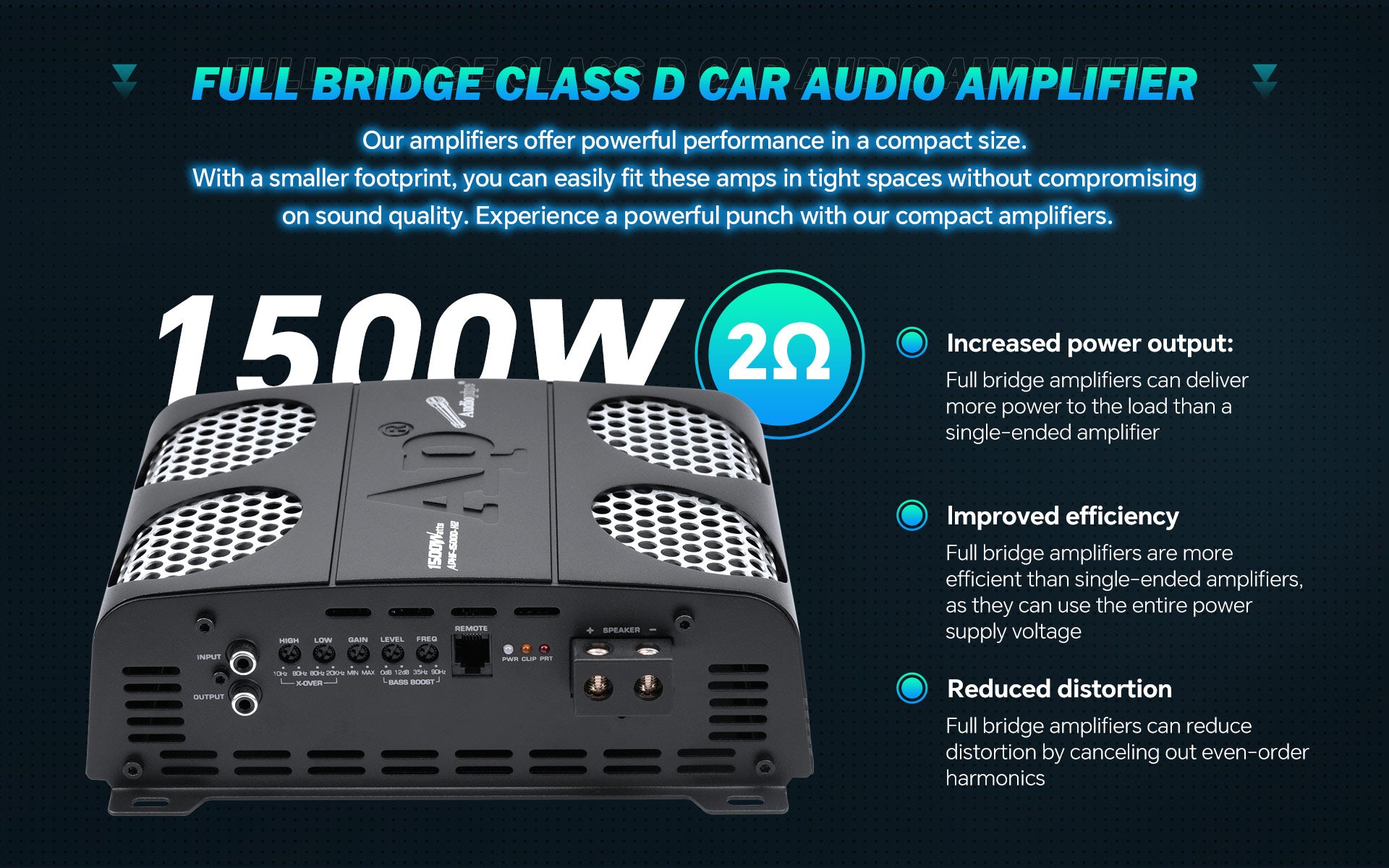 - MAXIMUM POWER OUTPUT: As a result of its ability to deliver more power to the load than a single-ended amplifier, this amplifier ensures efficient power output and superior performance up to 1500 Watts