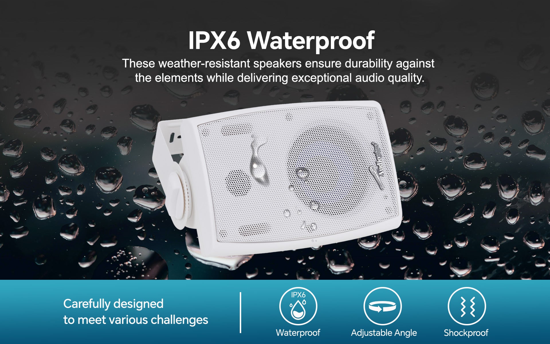 - WEATHER RESISTANT: Equipped with an IPX6 weather-resistant rating, our speaker is designed to endure challenging climatic conditions, rendering it an ideal choice for both indoor and outdoor environments