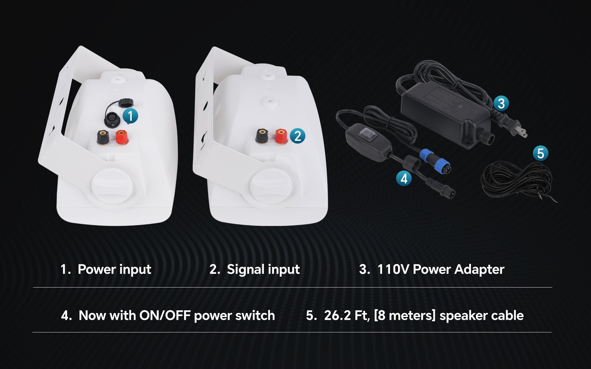 - VERSATILE AUDIO EXPERIENCE: Enjoy crystal-clear sound and robust performance with our 4” 2-Way Weatherproof Monitor Speakers, designed for expansive audio coverage in any environment, sold as a pair (one active and one passive)