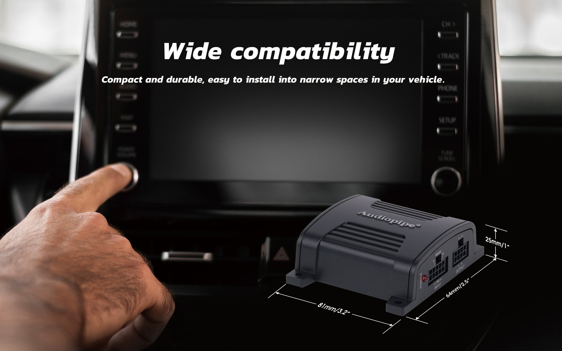- COMPACT AND DURABLE: Made with double sided PC board, this convertor guarantees long-lasting efficiency, enabling you to enhance your sound system without compromising any of your vehicle's integrated capabilities. Additionally, it features a compact design that allows for easy fitting into tight spaces within your vehicle