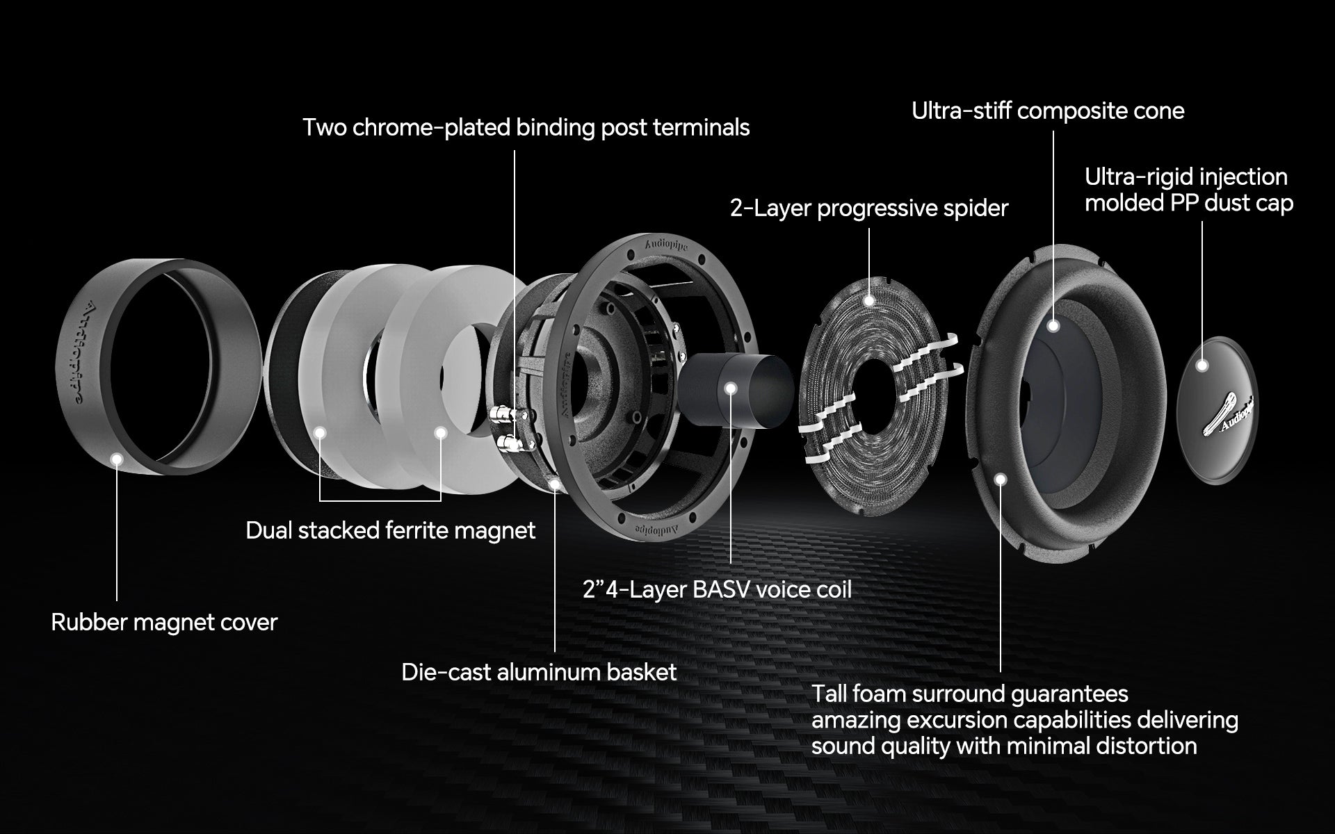 - ALUMINUM BASKET: The TXX-BDX-8D2's newly designed powdered black paint aluminum basket with an ultra-stiff injection molded PP (IMPP) dust cap, and a newly refreshed and strongly constructed dust-proof heat sink was engineered to deliver optimal sound quality.