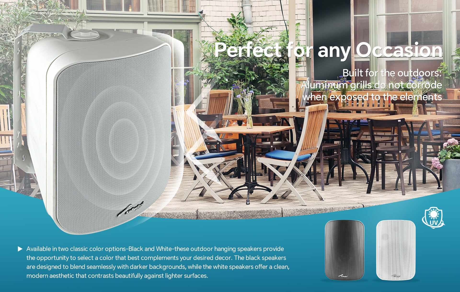 - VERSATILE USAGE: Designed for both indoor and outdoor environments, this loudspeaker offers flexible installation options, making it perfect for various settings such as patios, living rooms, and commercial spaces.