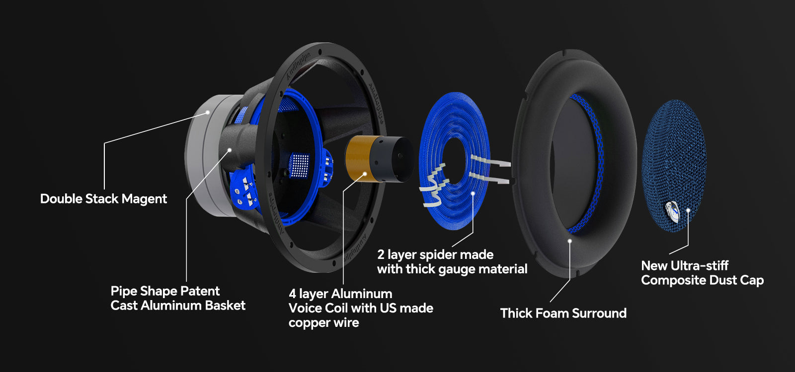 - VOICE COIL: This subwoofer boasts 2.5" 4-layer black aluminum (BASV) dual voice coil for high power output.